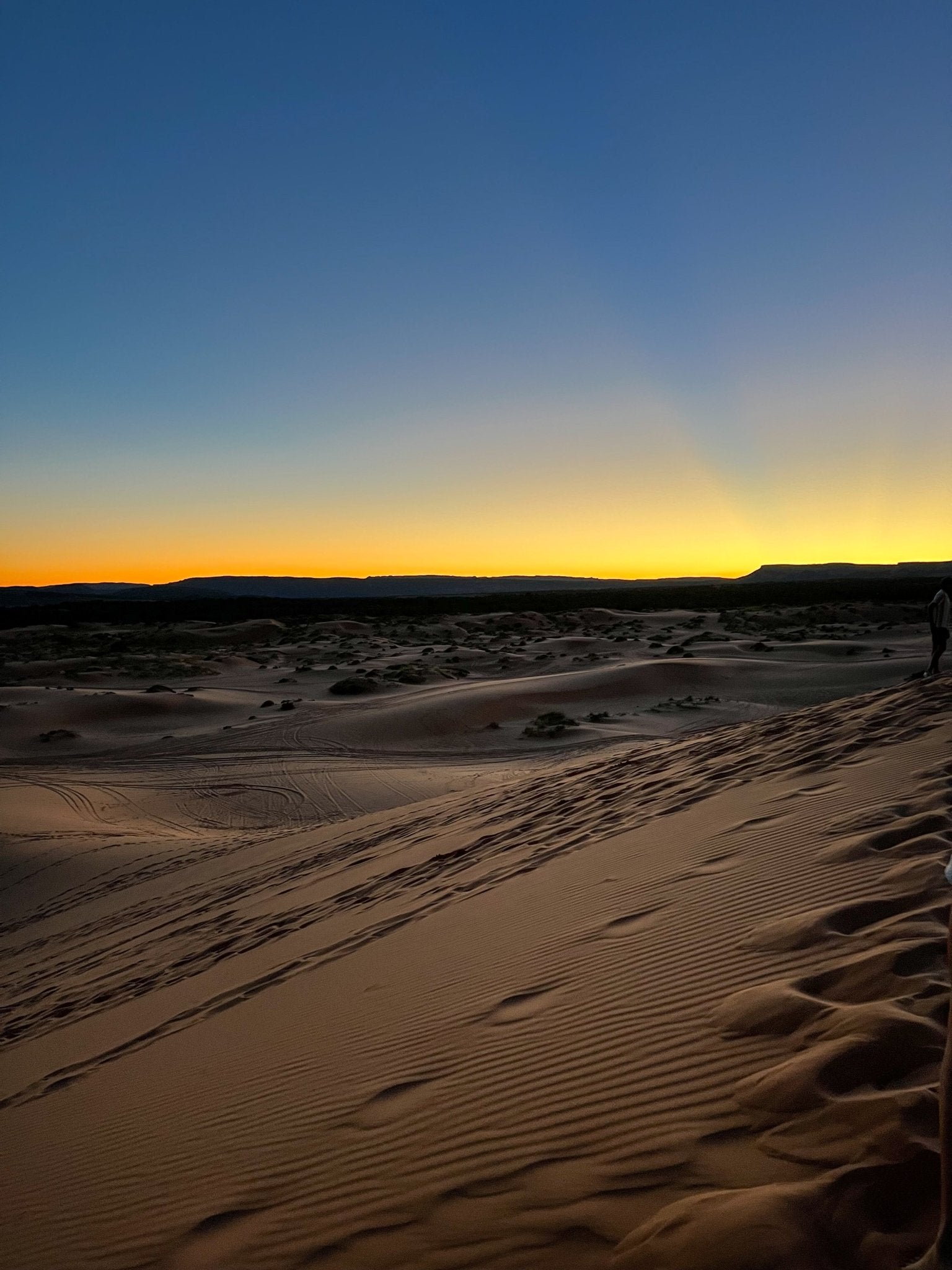 Our drive takes us to Coral Pink Sand Dunes, where we’ll settle into a scenic campground with showers and amenities. From there, the dunes are ours: